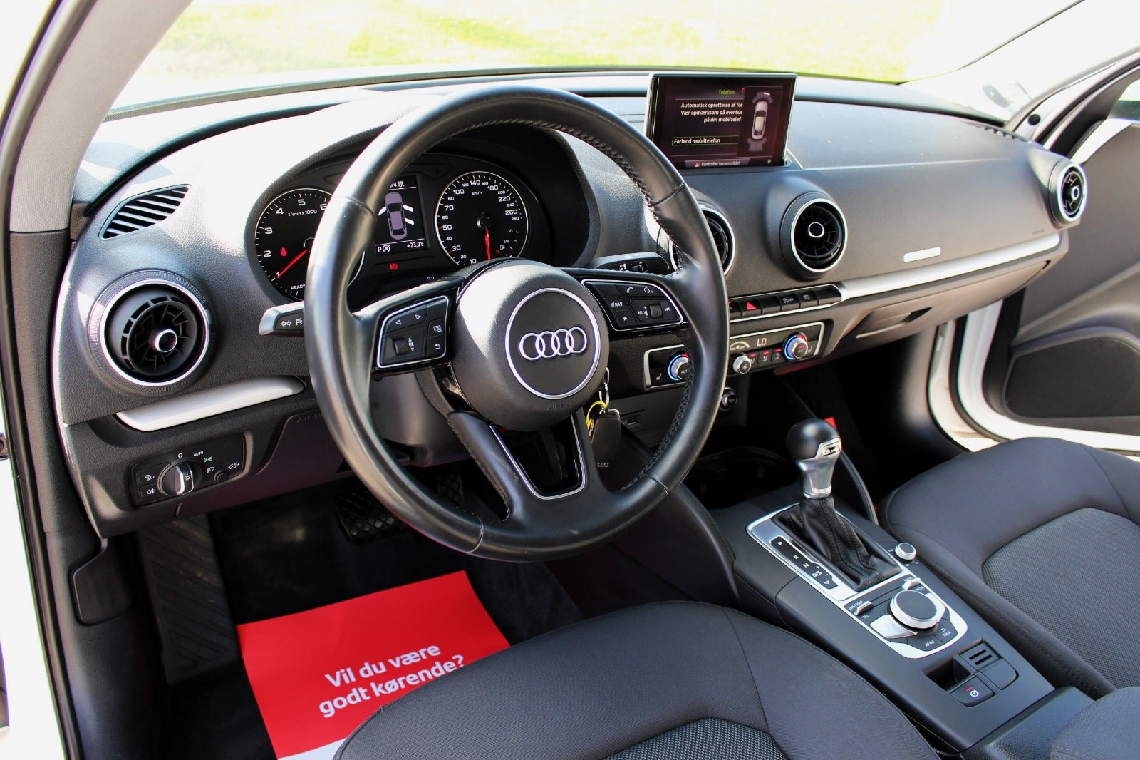 AUDI A3 MED BL.A; S-TRONIC AUTOMATGEAR, 16" AUDI ALUFÆLGE, 2 ZONERS KLIMA, 22,7 km/l & 680 kr. i halvårlig ejerafgift, fjernbetjent c-lås, PARKERINGSSENSORER FOR + BAG, infocenter, startspærre, højdejusterbare forlygter, 12V udtag, udvendig temperatur måler, SÆDEVARME, højdejusterbart førersæde, 4x EL-RUDER, AUDI MMI MED HÅNDFRIT TIL MOBIL/BLUETOOTH MM, armlæn, isofix, el-håndbremse, bagagerumsdækken, kopholder, stofindtræk, splitbagsæde, LÆDERRAT, 6 airbags, abs, antispin, esp, servo, lyspakke med vejr afhængighed, indfarvede kofangere, ikke ryger, synet 2/2024, sharkfin antenne. Første reg. dato: 3/4-2018. FRISK OG LETKØRT A3 MED DET BEHAGELIGE S-TRONIC AUTOMATGEAR, SAMT GOD KØREKOMFORT; SPORTY OG TIDSLØS PREMIUM BIL - TIL SKARP PRIS!