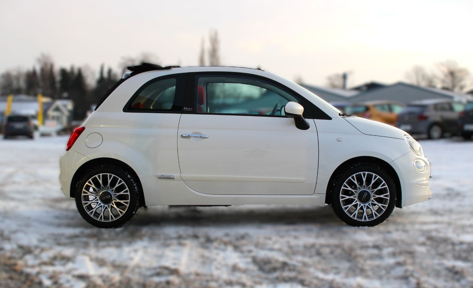 Fiat 500C MED BL.A; 16" Fiat ALUFÆLGE, A/C, 23,3 km/l & 460 kr. i halvårlig ejerafgift, kørecomputer, MULITFUNKTIONSRET I LÆDER, stofindtræk, højdejust. førersæde, splitbagsæde, helårshjul, EL KALECHE, led kørelys, aircondition, FJERNB. CENTRALLÅS, udv. temp. måler, EL-RUDER, MUSIKSTREAMING VIA BLUETOOTH/USB-A, PARKERINGSASSISTENT(bag), dæktryksmåler, isofix, city steering, ikke ryger, TANDREM & VANDPUMPE SKIFTET 6/2025, synet 5/2025. Første reg. dato: 29/9-2016. YDERST VELHOLDT FIAT 500C MED UHØRT LAVE KILOMTER, I ET RIGTIG FLOT SPEC; ITALIENSK DESIGNIKON MED CABRIO-FEELING, ÅBEN HIMMEL & GOD ENERGI!