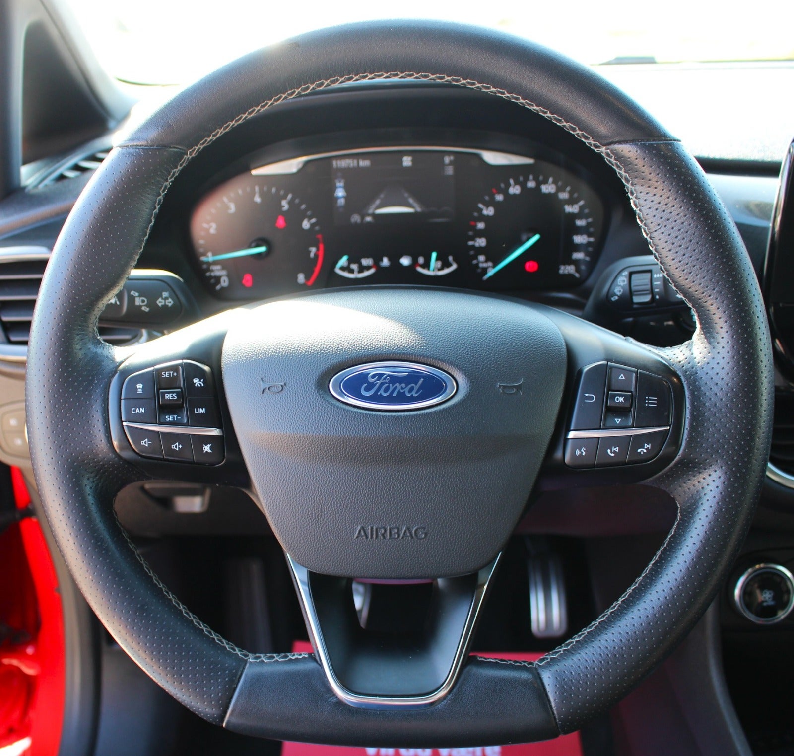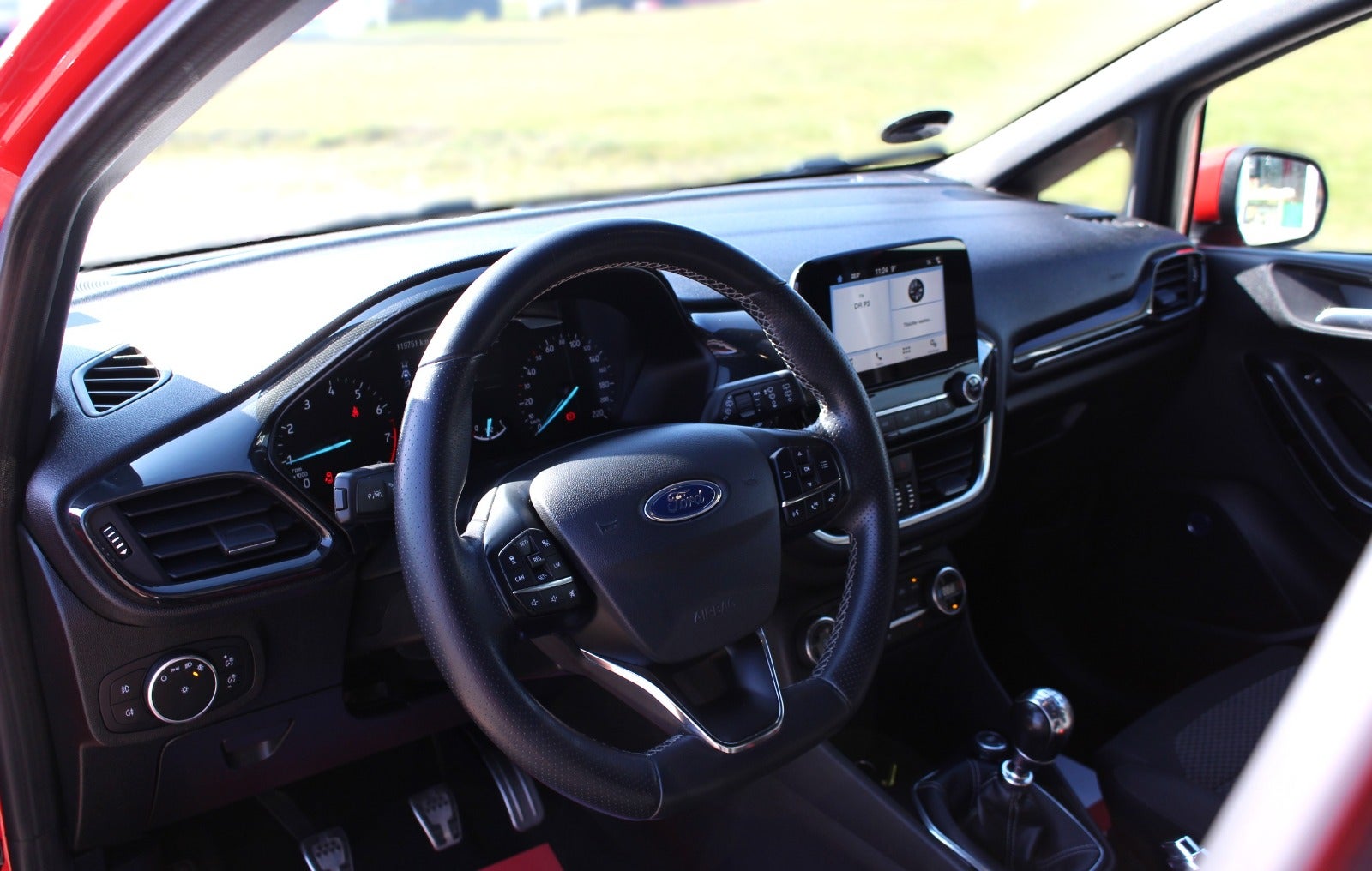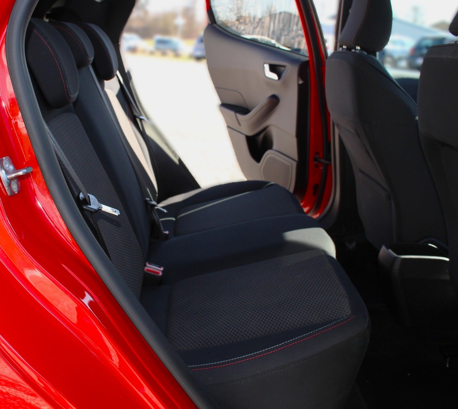 FORD FIESTA 1.0 ECOBOOST 140HK 'ST-LINE' MODEL MED BL.A; ADAPTIVFARTPILOT, Autostop = 21,3 km/l, kørecomputer, digitalt cockpit, bagagerumsdækken, multifunktionsrat, læderrat, stofindtræk, sportssæder, højdejust. førersæde, justerbar lændestøtte, splitbagsæde, mørk loftbeklædning, 18" alufælge, helårshjul, el-sidespejle m/varme, tågelygter, fuld led forlygter, led baglygter, mørktonede ruder i bag, aftageligt træk, fuldaut. klima, centrallås, fjernb. centrallås, nøglefri tænding, adaptiv fartpilot, varme i forrude, udv. temp. måler, sædevarme, 4x el-ruder, automatisk start/stop, dab+ radio, navigation, håndfrit til mobil, musikstreaming via bluetooth, android auto, apple carplay, usb-a tilslutning, regnsensor, dæktryksmåler, isofix, automatisk lys, vognbaneassistent, ikke ryger. Første reg. dato: 15/03-2019. SPORTSLIG FIESTA ST-LINE I DEN FEDE HOT PEPPER RED METALLIC; SJOV OG VELKØRENDE GTI PANG DANG TIL DET HALVE AF PRISEN!