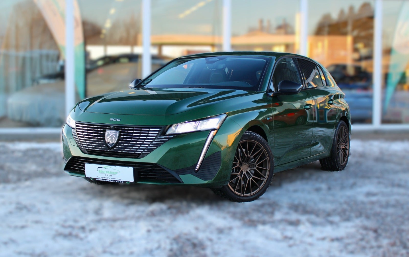 VELHOLDT PEUGEOT 308 PLUG‑IN HYBRID, I DEN FLOTTE OLIVINE GRØNNE FARVE, FYLDT MED UDSTYR; FRANSK CHARME – DER KOMBINERER HYBRID TEKNOLOGI, KOMFORT & ØKONOMI I ÉN SKARPT KØRENDE PAKKE!